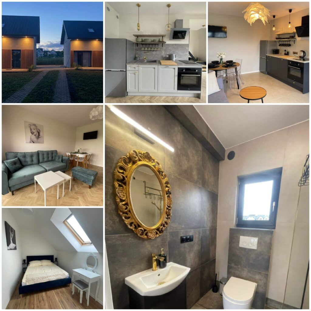 Zapraszamy do wypoczynku w Baltic House – całorocznych domkach, które znajdują się w Karwi. Do Państwa dyspozycji posiadamy dwa domki, każdy z nich przystosowany jest dla 6 osób. Na piętrze znajdziemy dwie sypialnie, a na parterze łazienkę oraz salon z aneksem kuchennym wyposażonym m.in. w piekarnik, zmywarkę, lodówkę itp. Na zewnątrz każdy z domków posiada taras, grilla oraz własne jacuzzi. Na posesji znajduje się także plac zabaw dla dzieci oraz hamaki.